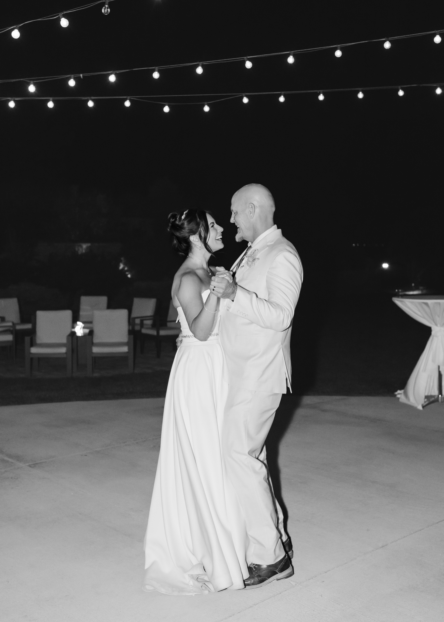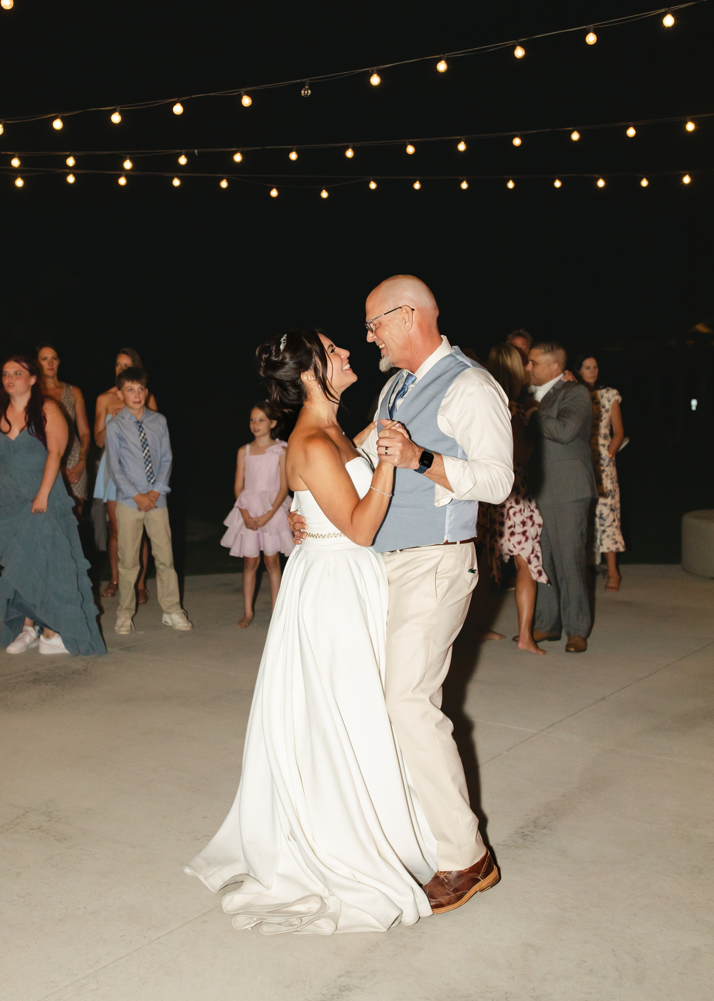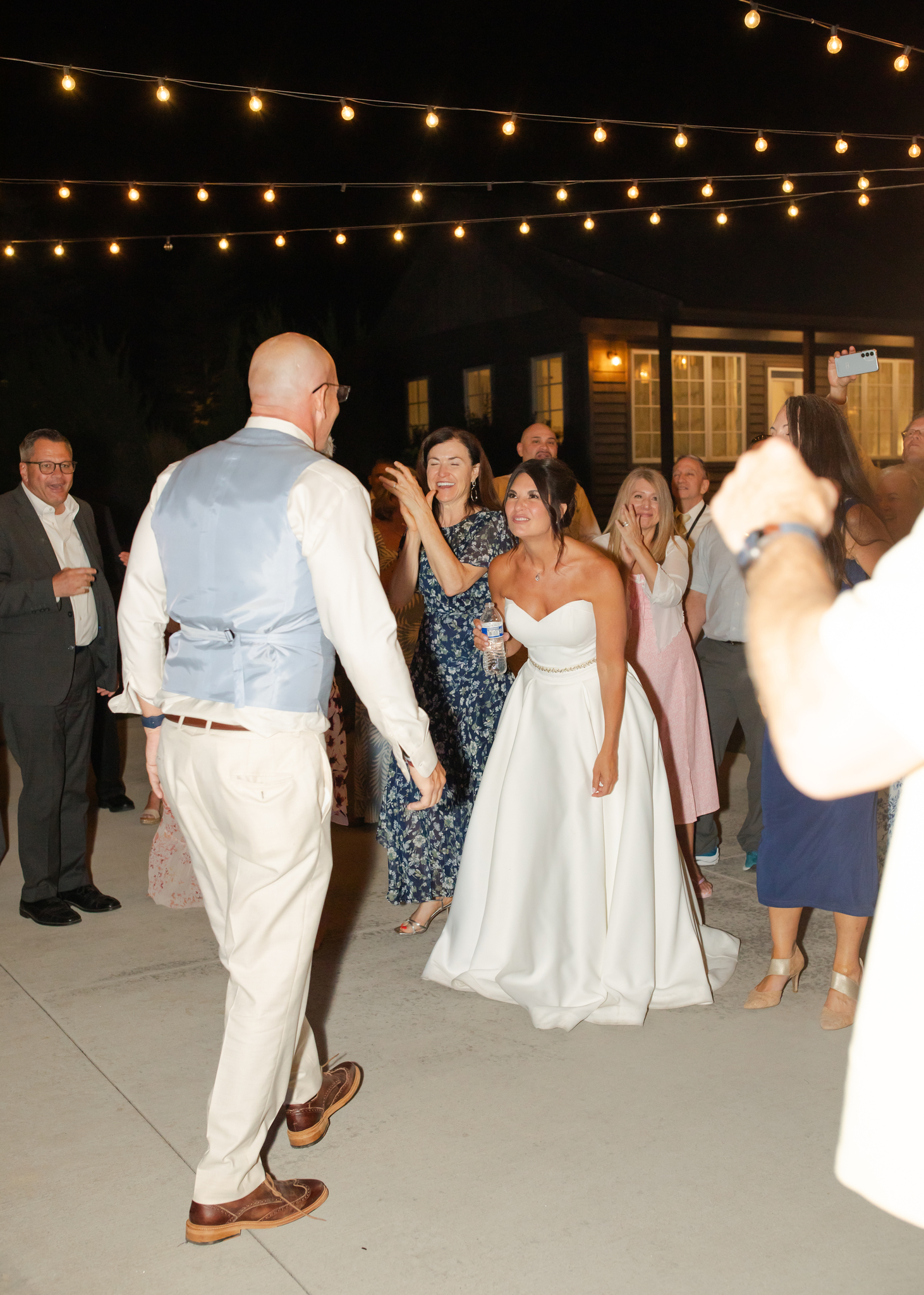 So many touching words were spoken; so many lives altered by the love of this couple. Once dinner was complete, the dancing made its way outside. And it was a mild July night with great temperatures. String lights surrounded the patio as Matt and Renee took their first dance. Her mom broke out moves like an expert and his brothers had us all laughing.