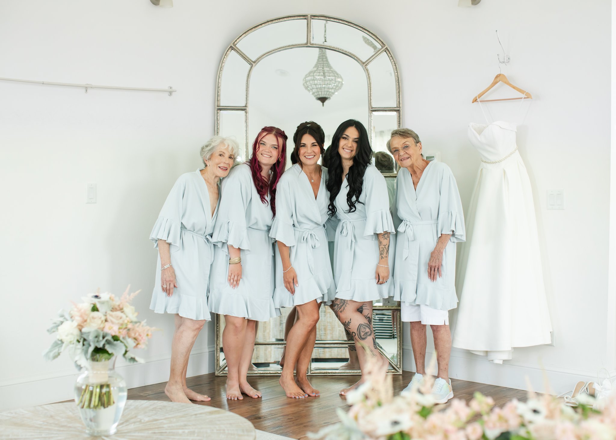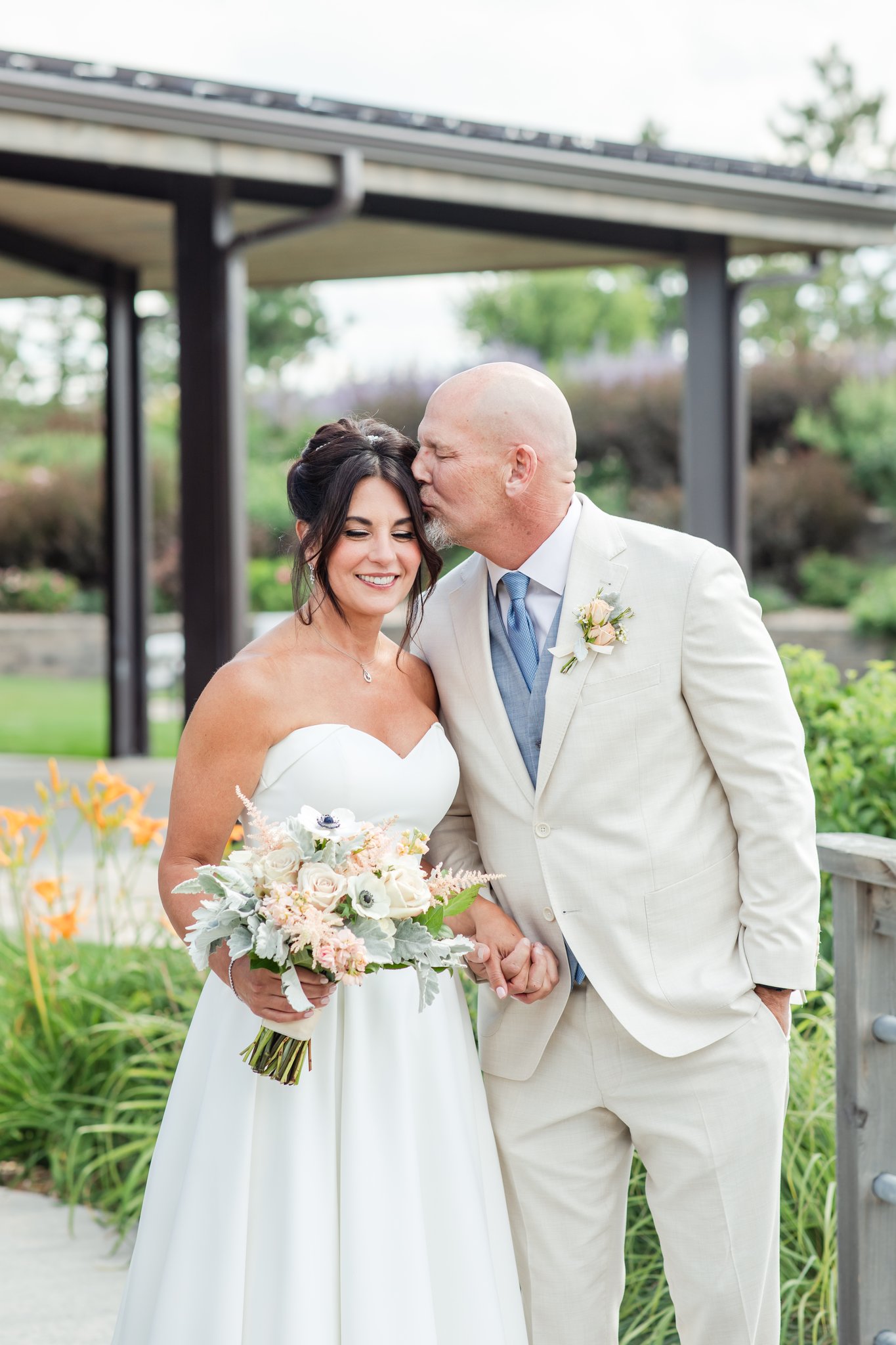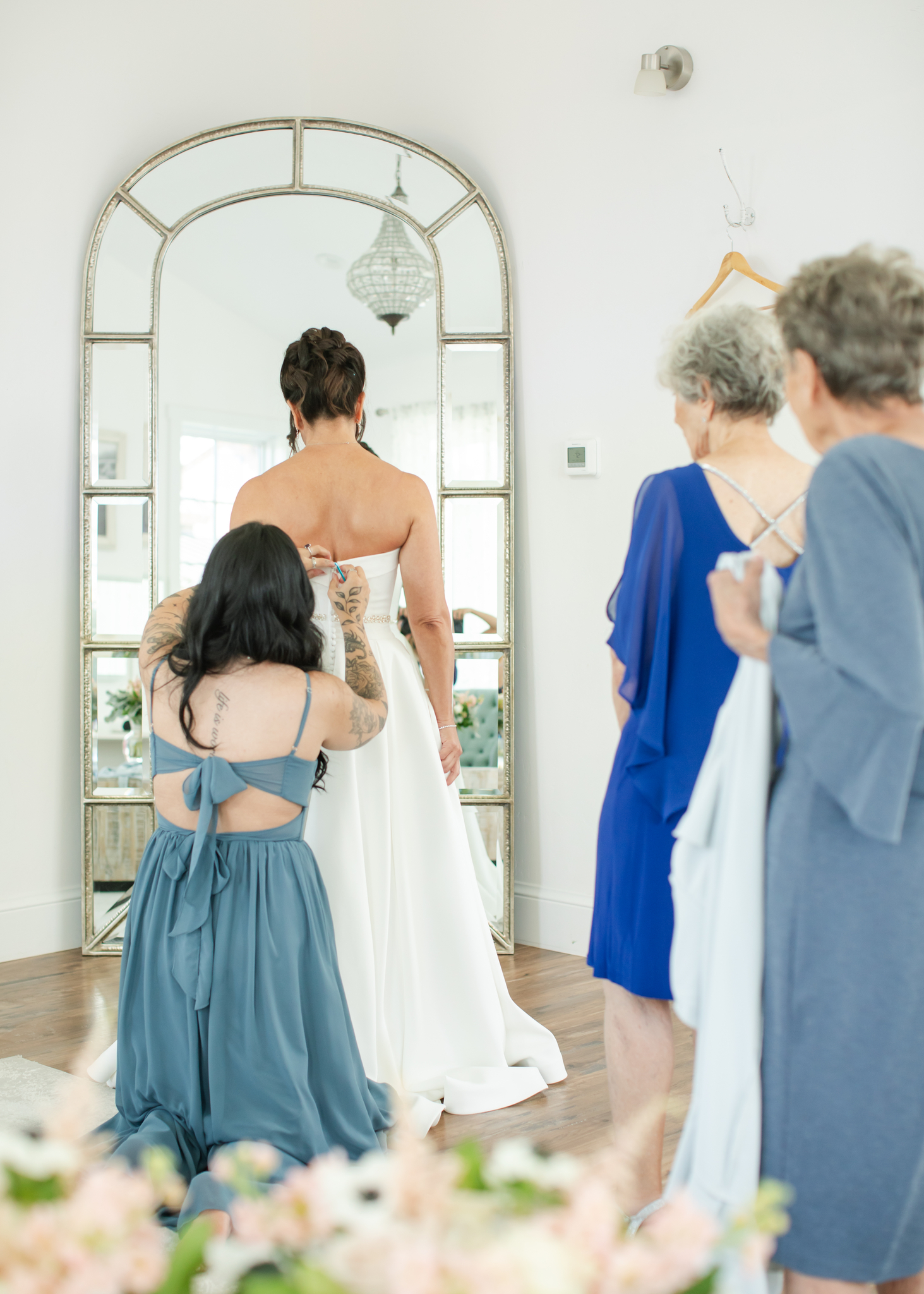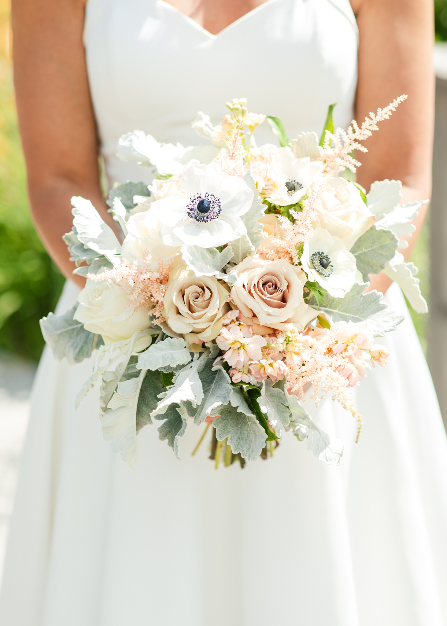When I stepped into the bridal suite I found Renee with a smile on her face and multiple generations of beauty. She has impeccable style and that translated easily to the details of the day. Florals of blush, champagne, and navy blended flawlessly. The girls wore dusty blue dresses and the guys wore navy suits. But her shoes. Oh my goodness, her cute shoes. Heels with pearl bows were the finishing touch.