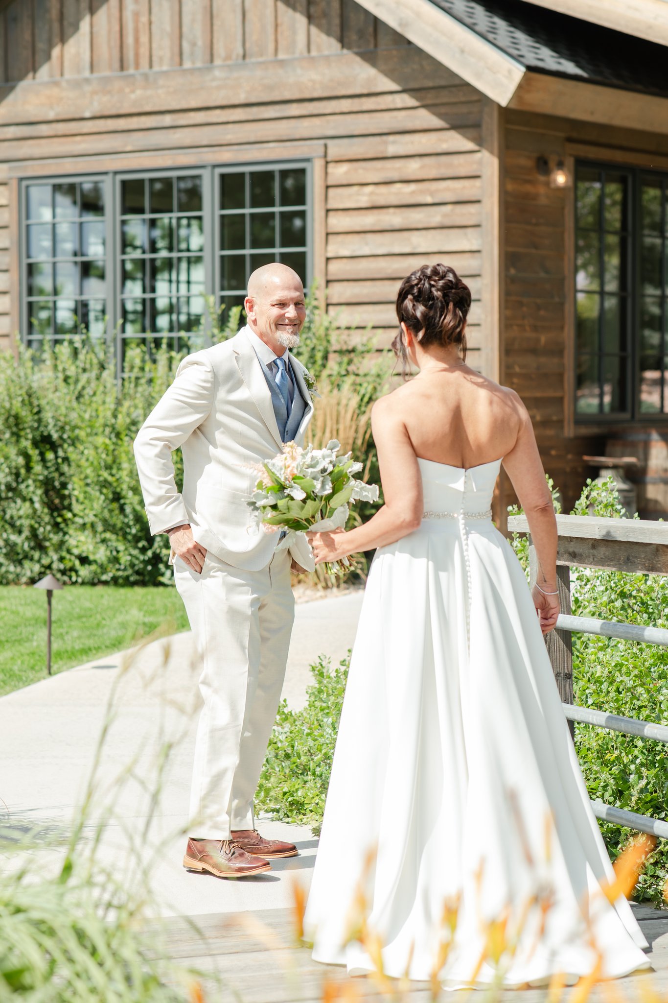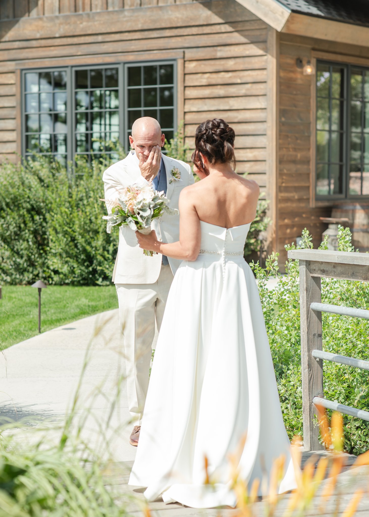 He creased his forehead in hopes of holding the emotion. But the tears in his eyes gave him away. Matt is an affectionate man and his weakness for Renee is obvious. They love with abandon and capturing their first look was such a gift.