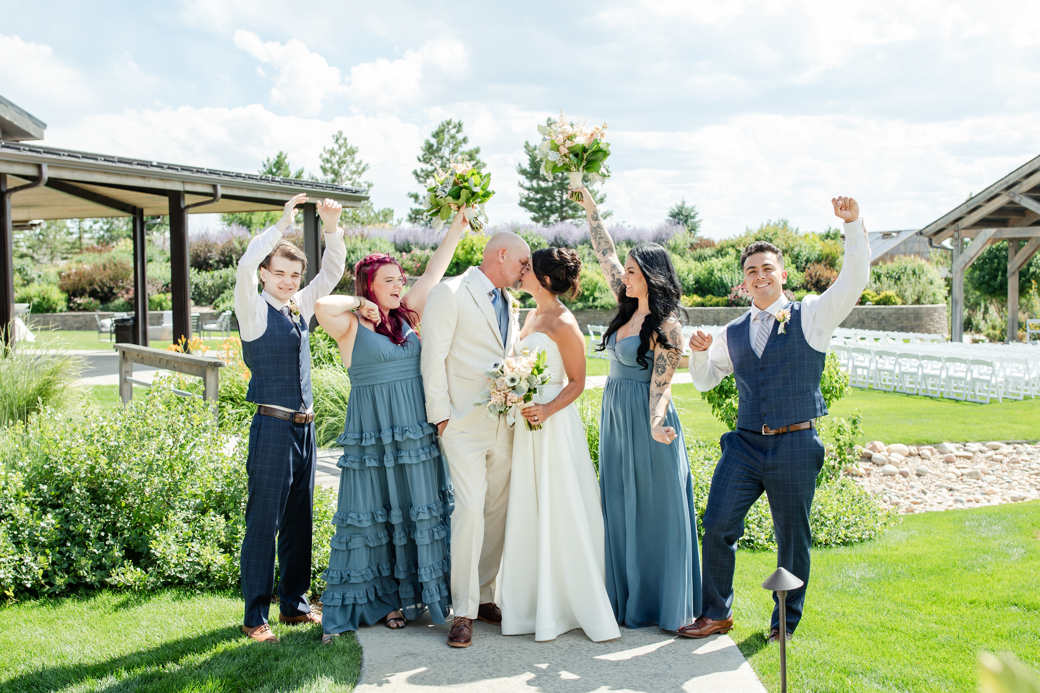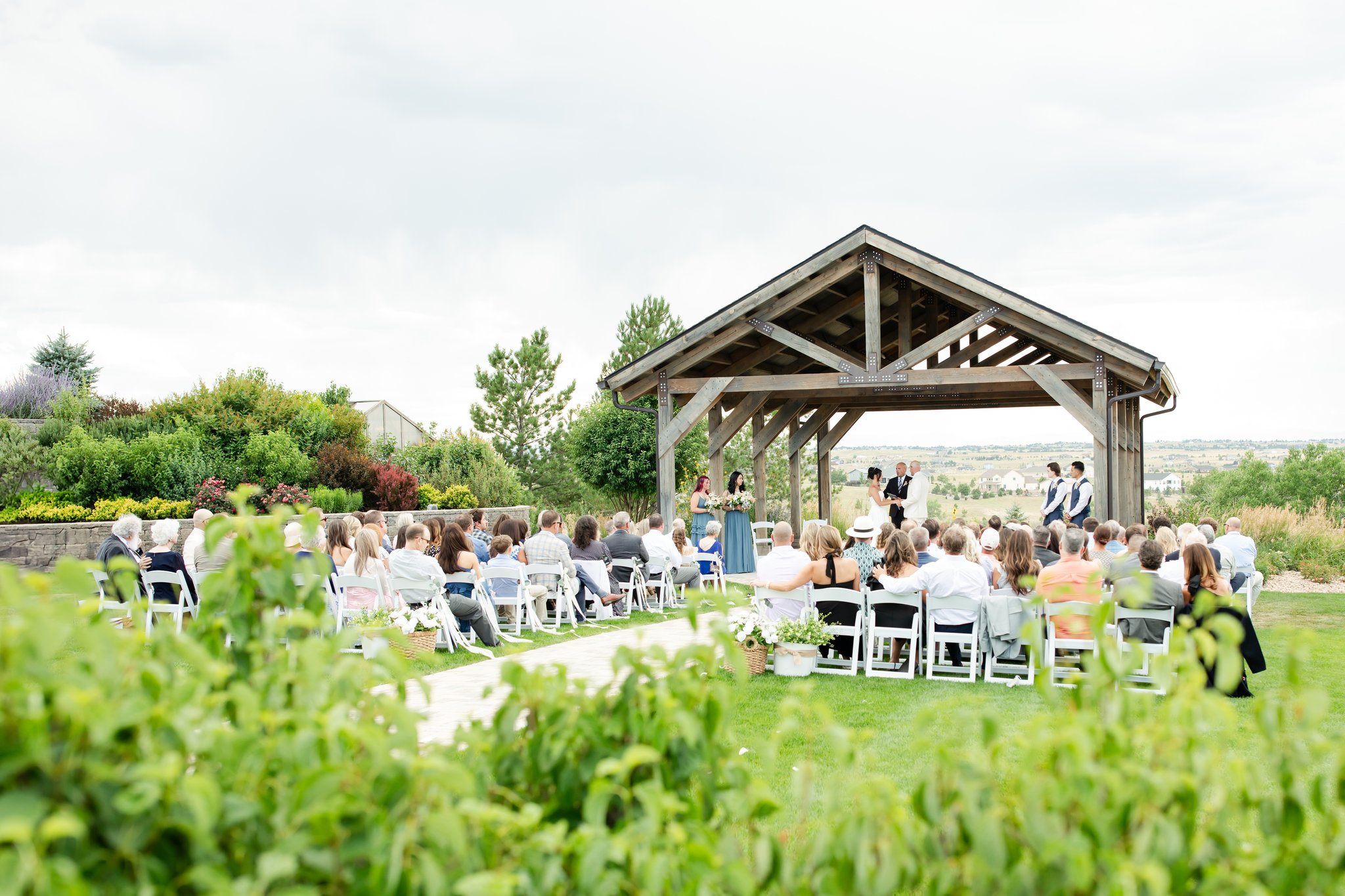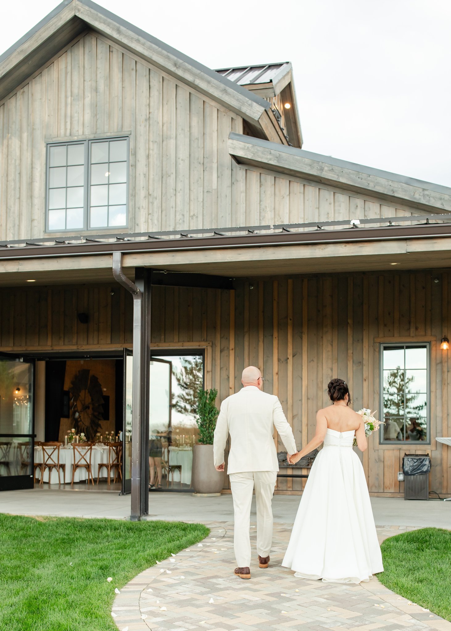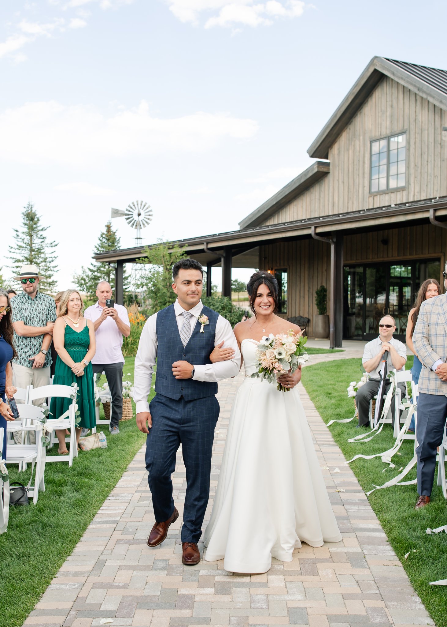 Out past the hustle of Denver sits the most quaint, stunning wedding venue. Bonnie Blues has a history, a story, and was just what Matt and Renee were wanting. It is modern, rustic, and elegance in one. Bride and groom each have their own suite complete with a wet bar, plenty of mirrors, and chic accents. Options for ceremony include a newly built greenhouse or outdoor gazebo with mountains in the distance. For reception, walk into their expansive dining area that can also double as a dance floor. But it’s the attention to detail that really elevates this venue. The landscape is lush with flowers and trees. There is a putting green, an outdoor dance space with string lights, wooden bridge, and fire pits. Find a vintage pickup and windmill for epic photo locations.