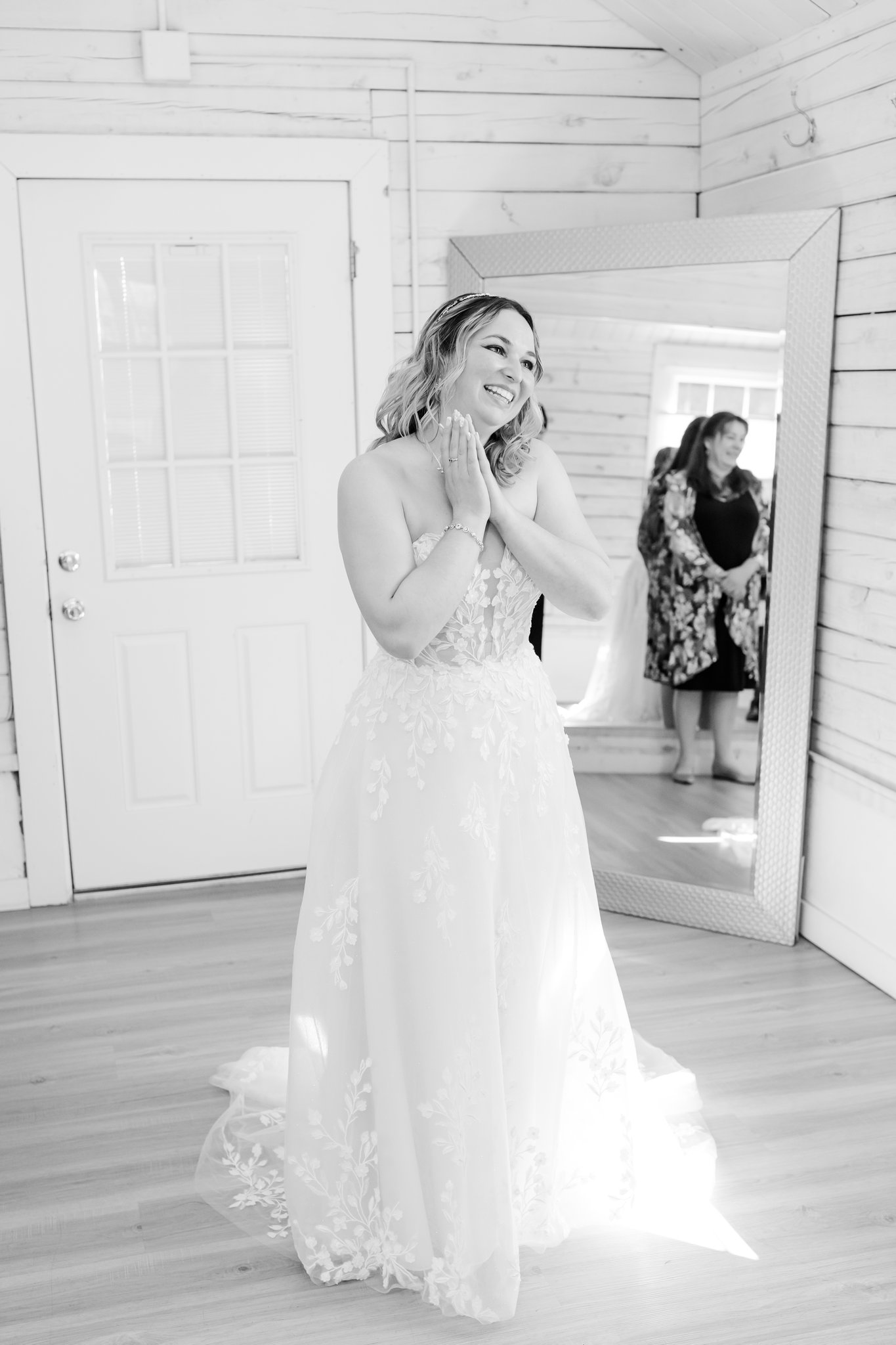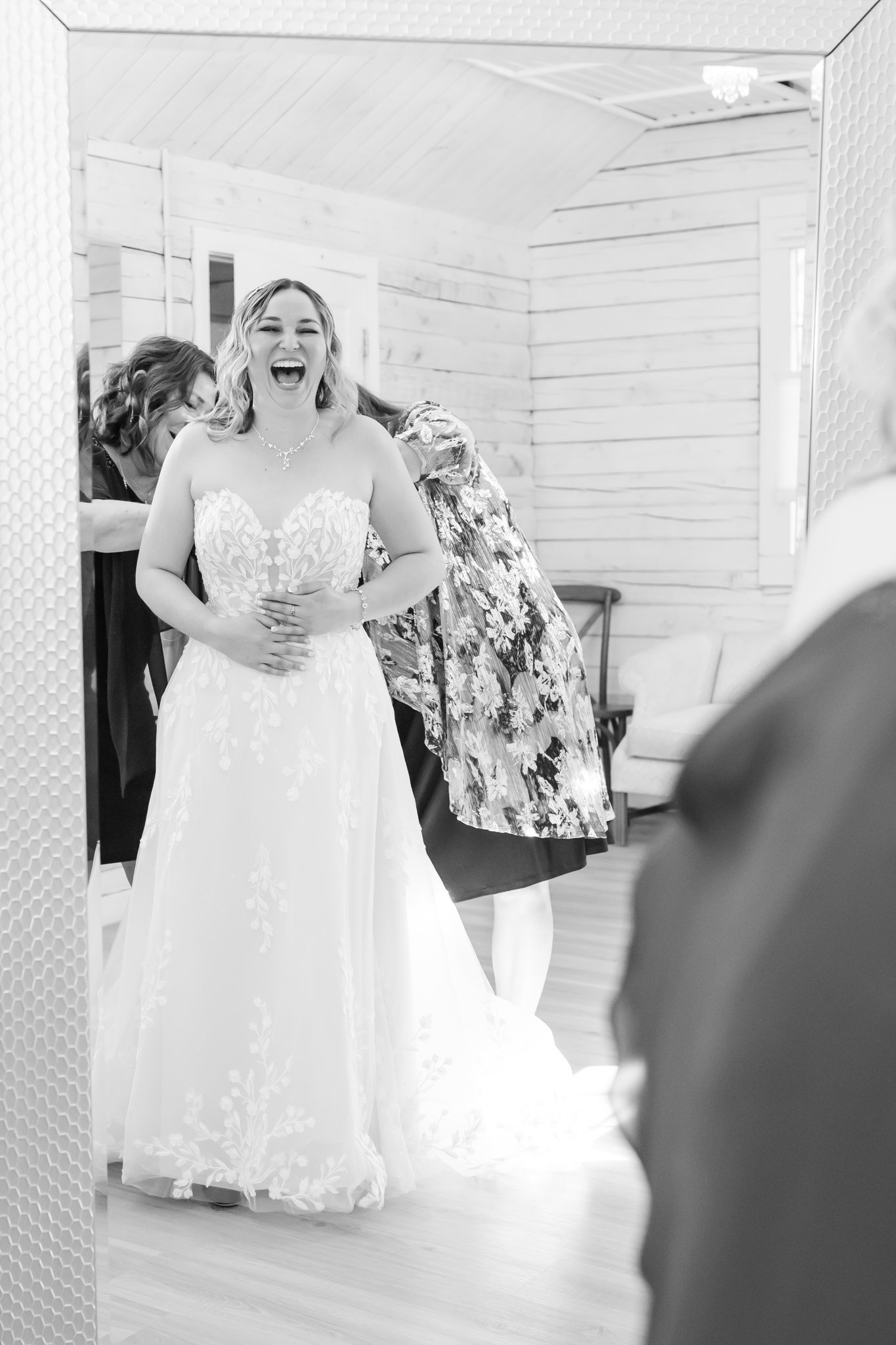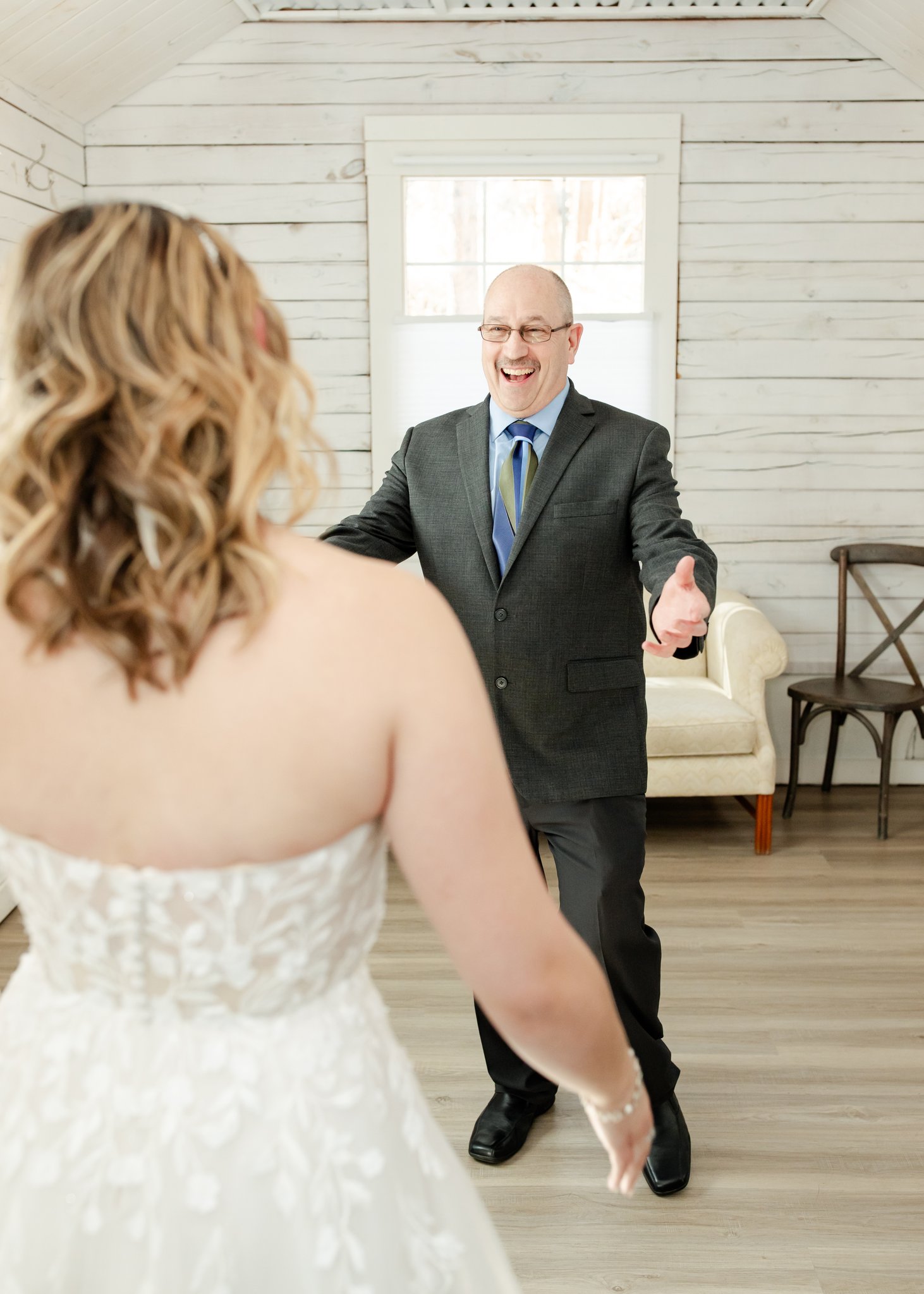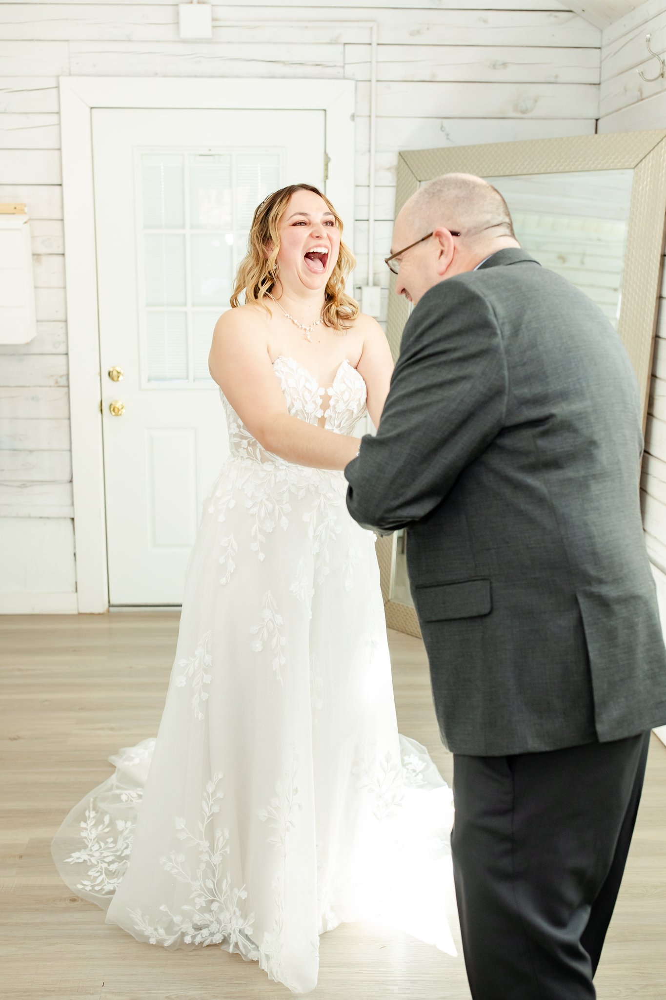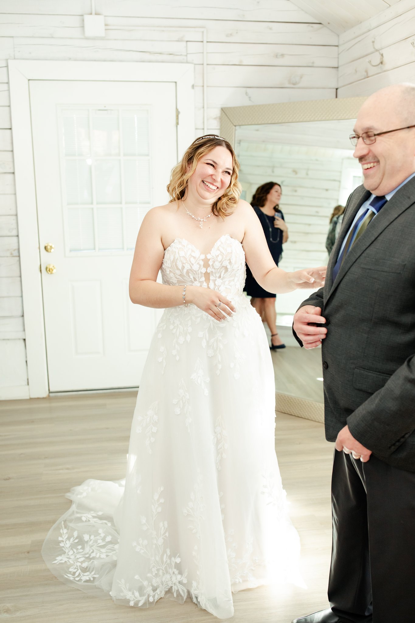 In the white-walled bridal suite at Pinecrest, Bri had a first look with her dad. It wasn’t overly serious or composed. She kept giggling. The kind of laughter that comes from nerves, excitement, and the realization that something big is about to happen.
